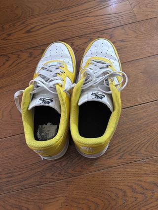 Zapatillas Nike vintage, en color blanco y amarillo. Ideales para un look casual y con estilo. Usadas 4 veces - Diseño clásico y atemporal. - Material de cuero. - Cordones amarillos. Se hacen envíos