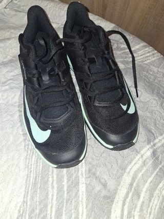 Vendo zapatillas de fútbol Nike para niño, en color negro. Están prácticamente nuevas. - Modelo de tacos para césped artificial. - Diseño ligero y cómodo. - Talla de niño.