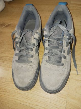 Zapatillas Nike Air Force 1, color gris, talla 37.5. Son usadas, pero están en buen estado. - Modelo clásico y cómodo. - Ideales para el uso diario. Usada pero en buen estado. Nuevas costaron 120 euros.