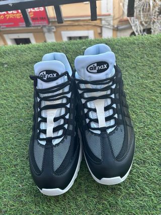 Zapatillas Nike Air Max 95 en color negro y blanco. Un clásico del diseño deportivo. - Diseño icónico con capas superpuestas. - Malla transpirable en la parte superior. - Unidad Air visible en la mediasuela.