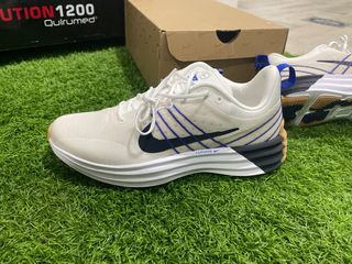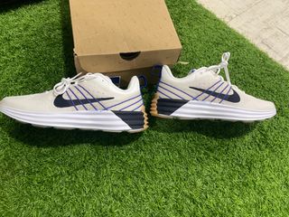Zapatillas Nike Lunar Roam en talla 39. - Diseño con líneas azules y detalles en azul marino. - Suela blanca con detalles en color madera en el talón.