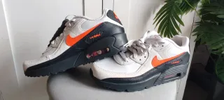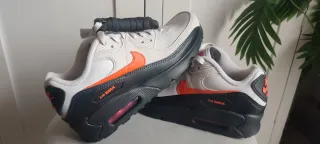 Zapatillas Nike Air Max 90 en talla 38, a estrenar. - Diseño moderno con detalles en naranja y gris. - Suela con tecnología Air Max visible.