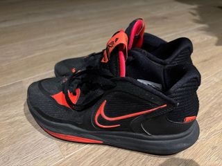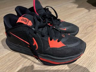 Zapatillas de baloncesto Nike Kyrie Low V en talla 40. Combinan negro y rojo para un look llamativo. - Diseño bajo para mayor movilidad. - Cierre con cordones. - Detalles en color rojo vibrante.