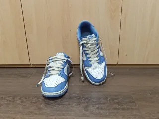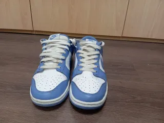 👟 Estado: Usadas pocas veces. Presentan algunas manchas visibles del uso (ver fotos), nada estructural: suela en buen estado y zapatilla firme. 📦 Incluye: ✔ Caja original ✔ Envoltorio interior original 📏 Talla: 44 EU 🎨 Color: Azul claro / Blanco 🏷 Modelo: Nike Dunk Low Retro No conservo ticket porque fue un regalo de hace tiempo, pero son 100% originales. Se pueden ver y probar sin compromiso. 📍 Entrega en mano o envío por la plataforma. 💬 Precio negociable con respeto.
