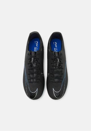 Zapatillas de fútbol Nike Zoom Mercurial Vapor 15 para hombre. - Diseño en color negro con detalles en azul. - Swoosh plateado en el lateral.