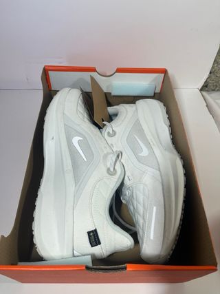 Zapatillas deportivas Nike en tonos beige y blanco. Diseño moderno y ligero. Valor de mercado 149,99 €. La caja se encuentra sin tapa.