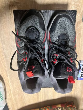 Zapatillas de baloncesto Nike Lebron 19. En su Caja Original. Usadas 2 veces y en interior no de ha andando por exterior con ellas. - Diseño en negro y rojo. - Cierre con cordones. - Calcetín rojo que ajusta muy bien a la forma del pie.