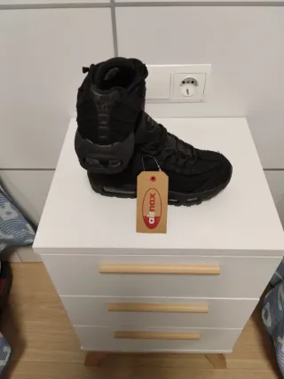 Zapatillas deportivas Nike Air Max 95 con un diseño moderno y llamativo. - Combinación de colores negro, gris y detalles en amarillo neón. - Sistema de amortiguación Air Max visible en la suela. - Paneles laterales con degradado de grises. ESCUCHO OFERTAS RAZONABLES