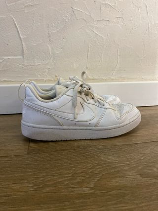 Vendo un par de zapatillas Nike blancas. Son de estilo casual y parecen estar en buen estado, aunque presentan algunas señales de uso. - Ideales para el día a día. - Cómodas y ligeras.
