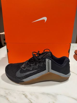Zapatillas deportivas Nike Metcon 6 en talla 42. Diseñadas para entrenamiento y rendimiento (CrossFit). - tienen un tiempo pero se han usado muy poco. - plantilla y etiqueta blanca interior de especificaciones sin desgaste (producto en buen estado).