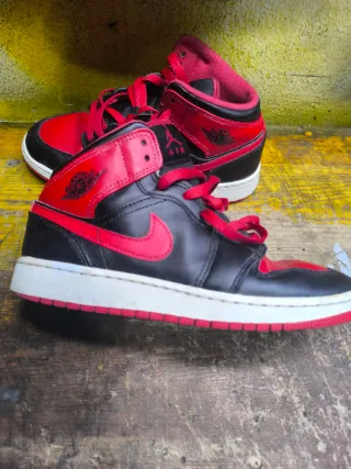 Zapatillas deportivas Nike Air Jordan 1 Mid. - Diseño de corte medio. - Combinación de colores negro y rojo.