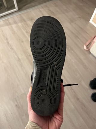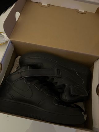 Zapatillas altas de la marca Nike, modelo Air Force. - Color negro. - Cierre con cordones y correa de velcro. - Detalle metálico 'AF1' en la lengüeta.