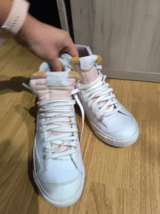 Zapatillas altas de la marca Nike en color blanco con detalles en rosa. - Cierre con cordones. - Diseño deportivo y moderno. - Suela de goma.