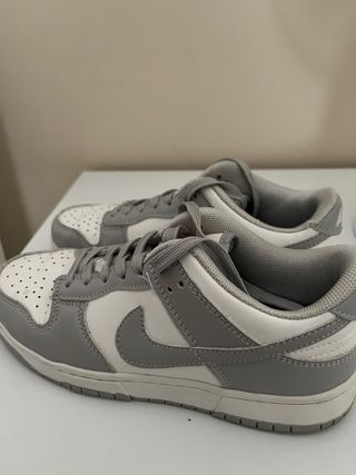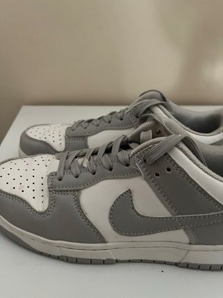 Zapatillas Nike Dunk Low en tonos grises y blancos. Un clásico versátil para tu día a día. - Diseño bajo. - Combinación de cuero y material sintético.
