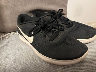 Zapatillas deportivas Nike Free en color negro con detalles blancos. Perfectas para running o uso diario. - Diseño ligero y transpirable. - Suela flexible para mayor comodidad. - Cierre con cordones.