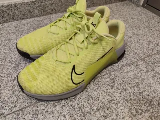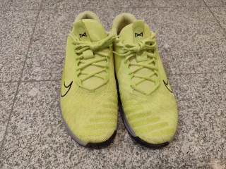 Zapatillas deportivas Nike Metcon en llamativo color amarillo neón con detalles en gris. Son talla 47 pero para un 46 va bien, ya que tallan pequeño. Ideales para gym y CrossFit. Están nuevas, se han usado 2 veces. - Diseño moderno y funcional. - Material textil transpirable. - Suela de goma para mayor agarre.