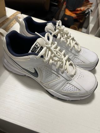 Las tengo que poner a limpiar, pero como nuevas, no las he usado casi. Zapatillas de estilo casual en tonos beige y blanco. - Diseño de caña baja. - Cierre con cordones. - Detalle de swoosh lateral.