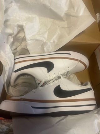 Zapatillas Nike Court Legacy sin estrenar. - Diseño clásico y versátil. - Combinación de blanco y detalles en marrón. - Talla 38.