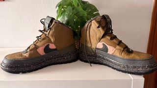 Zapatillas Nike Air Force 1 High Utility / Winterized en color marrón con detalles negros y suela moteada. Talla EUR 44,5 (US 10.5 / 28,5 cm). Modelo robusto tipo outdoor, ideal para invierno: materiales resistentes, interior acolchado y suela con gran agarre. Muy cómodas para uso diario o estilo urbano. ⚠️ Importante: la zapatilla derecha no tiene plantilla interior (se puede usar con plantilla genérica sin problema). Estado general bueno, tal como se aprecia en las fotos. Entrega en mano o envío