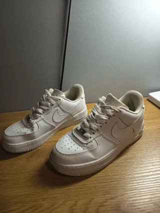 Zapatillas deportivas Nike en tonos beige y blanco. Perfectas para el día a día. - Diseño moderno y cómodo. - Logo de Nike visible.
