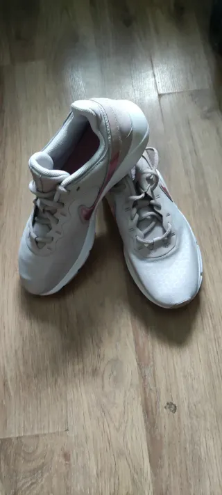 Zapatillas deportivas Nike en tonos beige y rosa. - Diseño moderno y cómodo. - Cierre con cordones. - Logo de Nike en el lateral.