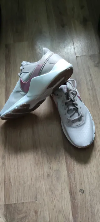 Zapatillas deportivas Nike con un diseño moderno y cómodo. - Combinación de colores gris y rosa. - Detalle de malla transpirable. - Suela robusta para mayor agarre.