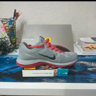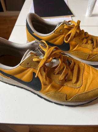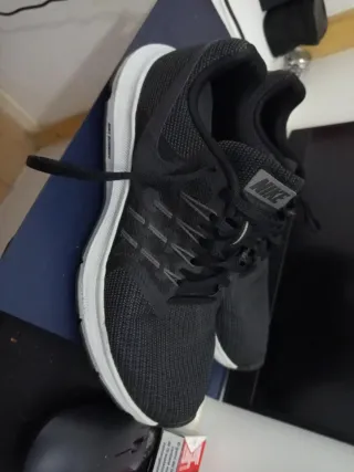 Zapatillas deportivas Nike talla 42. Tiene signos de desgaste por uso habitual incluso la suela. Tiene algunas pequeñas manchas que no se eliminan. Son unas zapatillas muy cómodas, se ajustan bien y perfectas para hacer deporte.