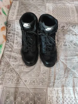 Zapatillas altas de diseño moderno y elegante. - Acabado texturizado tipo piel de cocodrilo. - Detalle de pelo en la zona del tobillo. - Cierre con cordones. Las zapatillas se han usado una semana nada más, las vendemos porque le quedan apretadas un poco a mi mujer, entrego sin caja.