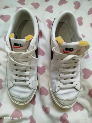 Zapatillas deportivas Nike con un diseño moderno. - Combinación de colores blanco y negro. - Cordones grises. - Suela negra. estan asi porq las saque de la lavadora