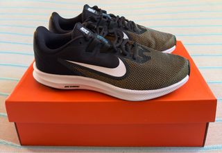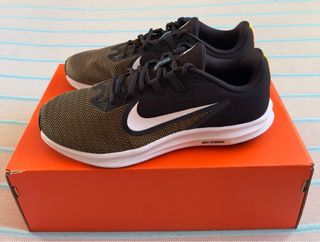 Zapatillas deportivas Nike Downshifter 9 en color negro y detalles dorados. - Diseño moderno y ligero. - Suela blanca con detalles. - Logo de Nike Running en la suela.