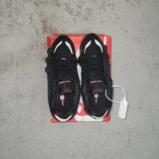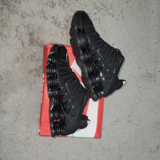 Zapatillas Nike Shox TL en color negro y rojo, talla 43. Se entregan con su caja original. - Diseño deportivo y moderno. - Suela con tecnología Shox para mayor amortiguación. Envío en 24h