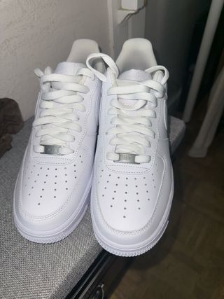 Zapatillas Nike Air Force 1, un clásico atemporal en color blanco. Perfectas para cualquier ocasión. Se vende porque fue un regalo y no es mi talla correcta, por lo cual no me quedaron no se han usado. No tienen caja porque fue un regalo son originales el precio no es negociable. nuevas en tienda valen 120 euros precio 90