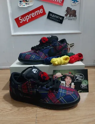 Zapatillas Nike SB Dunk Low Nardwuar con un diseño a cuadros. - Patrón a cuadros en azul y rojo. - Detalles de pompón en los cordones. - Swoosh negro en el lateral. - Enviós a toda España - factura original - Doble caja - original 100%