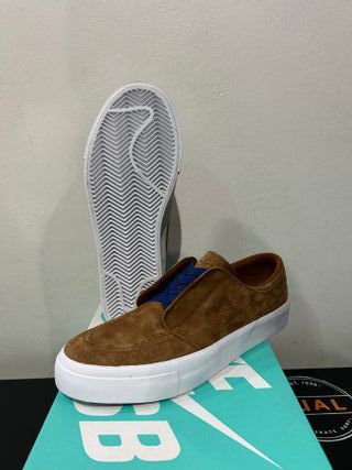 Zapatillas de ante marrón con detalles perforados y suela blanca. - Diseño slip-on. - Swoosh de Nike en el lateral. - Etiqueta de Nike SB en la lengüeta.