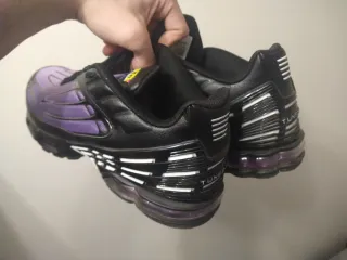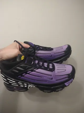 Zapatillas Nike TN Air Max Plus 3 morado y negro. están nuevas. m las regalaron junto con otras zapatillas y estas las habré usado un par d veces como mucho. son muy cómodas como todas las tn. no tienen ningún detalle, están perfectas. - Combinación de colores morado y negro. - Detalles de diseño distintivos en la parte superior. - Suela con tecnología Tuned Air.