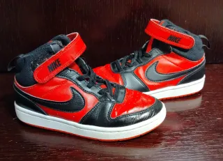 Zapatillas altas de Nike para niño en llamativos colores rojo y negro. Cuentan con cierre de velcro para un ajuste fácil y seguro. - Diseño de caña alta. - Cierre de velcro. - Logo de Nike en la lengüeta y lateral.