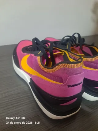 Zapatillas deportivas Nike de edición limitada. - Diseño llamativo en tonos rosa y amarillo. - Talla 46.