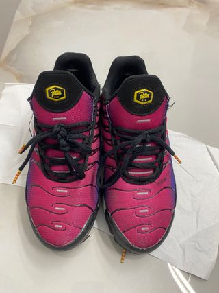 Zapatillas Nike TN Air Max Plus con un diseño degradado en tonos rosas y morados. - Detalle de logo Patta en la lengüeta. - Cordones negros. - Suela con tecnología Air Max.