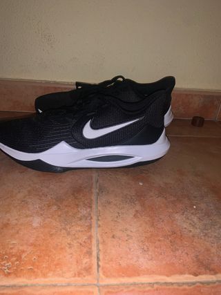 Zapatillas deportivas Nike Precision V en color negro con detalles blancos. Diseño moderno y cómodo. - Parte superior de malla transpirable. - Suela de goma para mayor tracción. - Cierre de cordones.