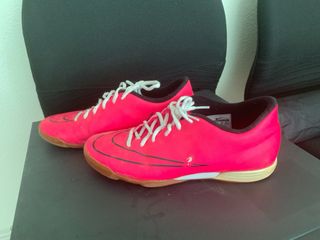 Vendo zapatillas Nike Mercurial, talla 43, color rosa. Están en buen estado, aunque presentan un pequeño desperfecto en una de las zapatillas. - Ideales para jugar fútbol sala. - Cómodas y ligeras. - Suela en buen estado.
