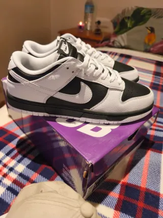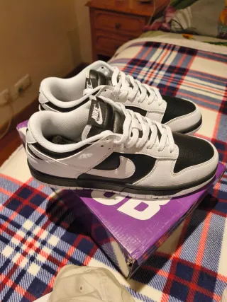 Zapatillas Nike Dunk Low con un diseño clásico en blanco y negro. - Combinación de cuero blanco y negro. - Swoosh de Nike en contraste. - Cordones blancos.