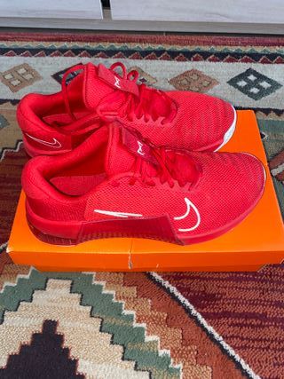 Zapatillas deportivas Nike Metcon 9 en color rojo y talla 44. - Diseño moderno y funcional. - Cierre con cordones y velcro - Logo de Nike en el lateral. Están nuevas usadas un día en gym Suela intacta y perfectas Justo me regalaron otras adidas y me gustan más #crossfit #nike #niketraining