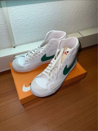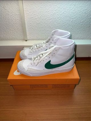 Zapatillas altas Nike Blazer Mid '77 en blanco con detalles verdes. Nuevas a estrenar en su caja original - Parte superior de cuero. - Suela de goma. - Cierre de cordones.