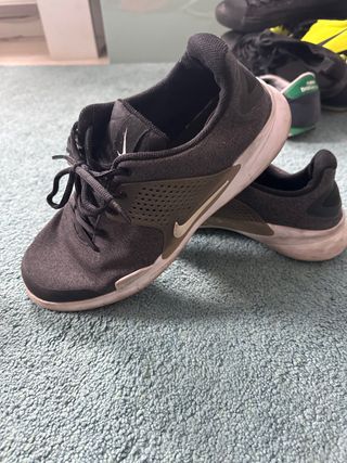 LEER ATENTAMENTE LA DESCRIPCIÓN: Muy poco usadas, aunque se nota más el uso por dentro, con roces normales del uso. Son de la marca Nike, no dispongo de la caja original, es la talla 40.5, el modelo es para gimnasio, pero se puede utilizar para toda ocasión, llevan una plantilla con el logo de Nike y una plantilla que traían adicional, ahí se nota algo más el uso, se acomoda perfectamente en el interior, están recién lavados, en la solapa se le nota más el uso, parece que esas manchas no se han ido del roce de los calcetines, en la zapatilla izquierda, tiene tambien una mancha que no pude quitar, no me caben todas las fotos.