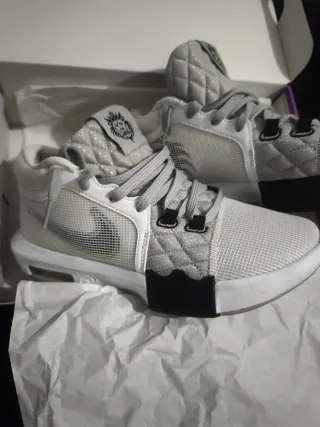 Poco uso me quedaron muy justas. Zapatillas deportivas Nike Lebron Witness VIII en tonos grises y blancos. Diseño moderno y cómodo. - Parte superior de malla transpirable. - Detalle acolchado en el cuello y lengüeta. - Suela de goma para mayor tracción.
