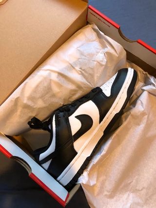 Zapatillas Nike Dunk Low con un diseño clásico en blanco y negro. - Combinación de cuero y material sintético. - Perforaciones en la puntera para ventilación. - Suela de goma para mayor tracción.