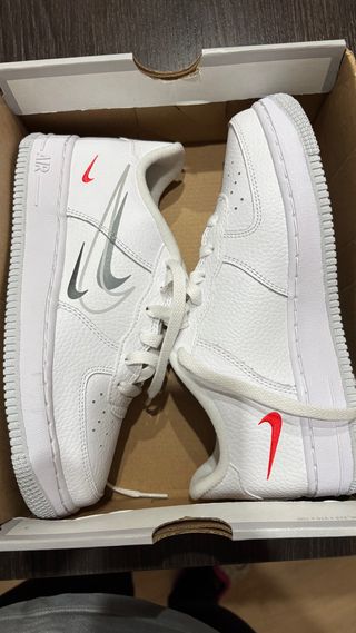 Vendo un par de zapatillas Nike en tonos blancos y rojos. Son ligeras y parecen estar en buen estado. - Ideales para el día a día. - Diseño deportivo y cómodo. - Talla (a determinar por el comprador).