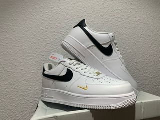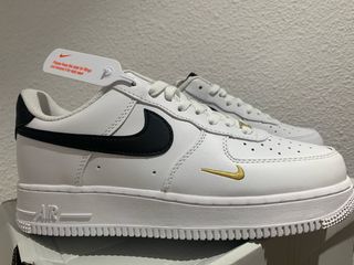 Zapatillas Nike Air Force 1 de estilo clásico. - Diseño en color blanco con detalles dorados. - Swoosh lateral en color negro. - Suela blanca con la inscripción AIR.