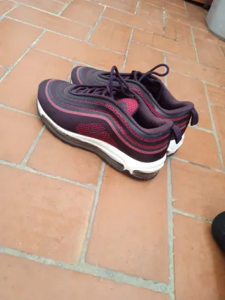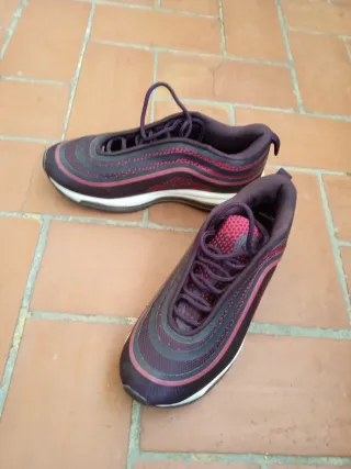 Zapatillas deportivas Nike Air Max 97 con un diseño llamativo. - Combinación de colores rosa y plateado. - Detalles brillantes. - Cierre con cordones.
