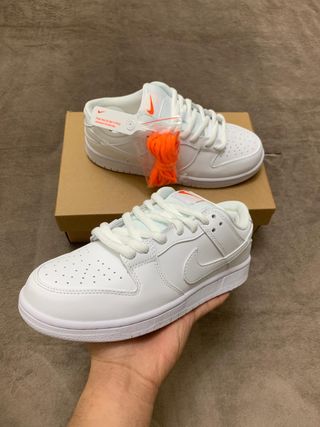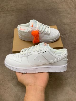Nike SB Dunk Low All White, un clásico limpio y atemporal que combina con todo. Ideales tanto para uso diario como para skate o streetwear. ✔ Estado: Nuevas a estrenar ✔ Color: Blanco total (All White) ✔ Talla: EU 40 (25 cm) ✔ Incluye: Caja original + cordones extra naranjas ✔ Referencia: FJ1674-100 ✔ Fabricación: Vietnam